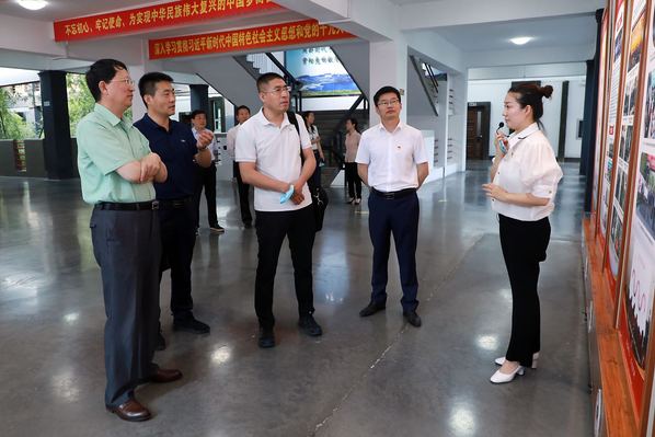 在学校领导班子的陪同下,调研组一行实地踏查了“学习筑梦”园,并观看了“新时代、新长旅”办学成果展和学校宣传片。