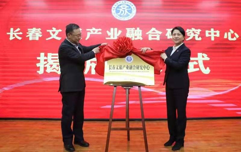 最后,曲笑与郑晓明共同为长春文旅产业融合研究中心揭牌。